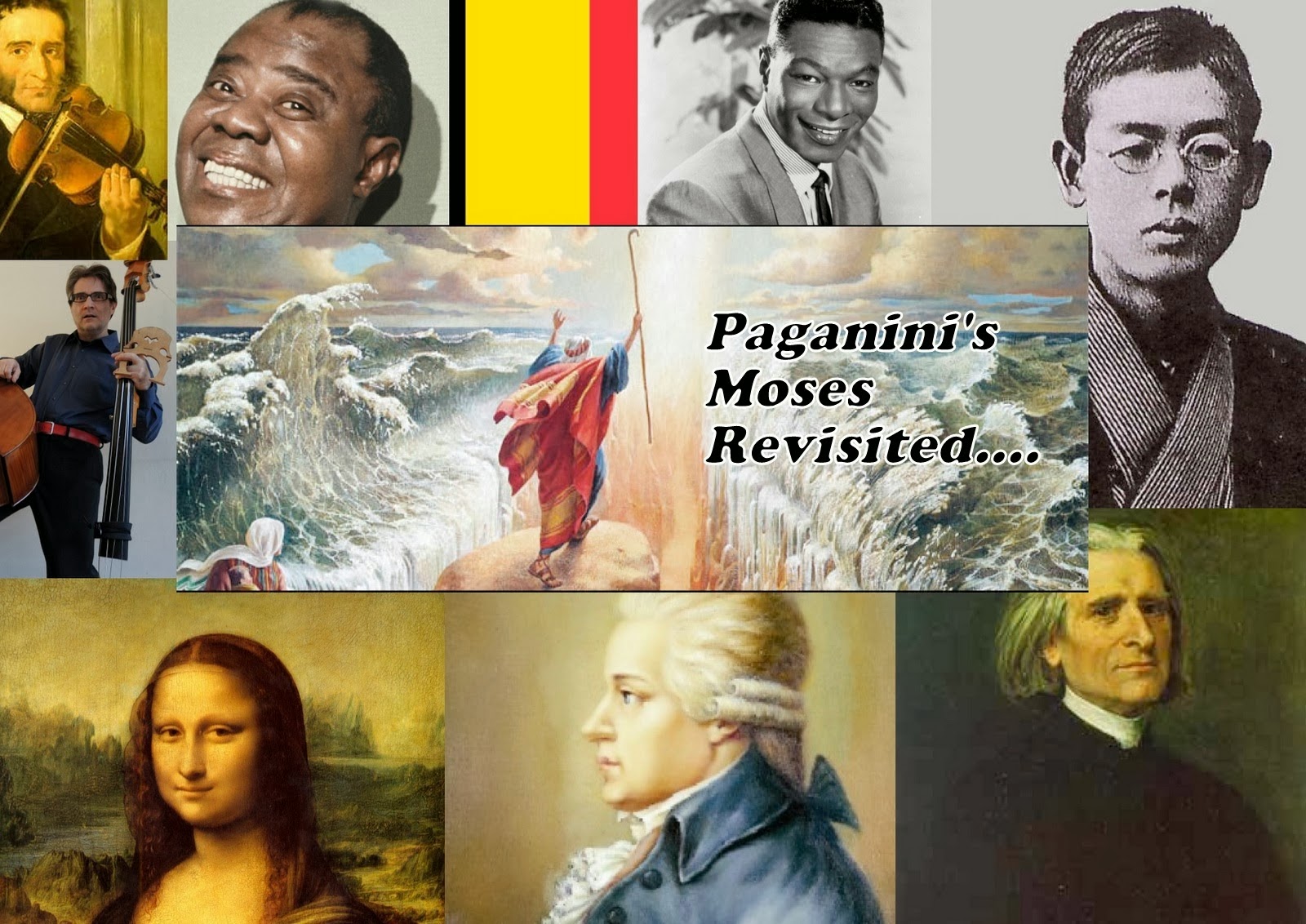 So we did. The theme which Paganini uses in his piece comes from Rossini‘s opera “Mosè in Egitto” (Moses in Egypt). He uses the beautiful chorus, the prayer “Dal tuo Stellato Soglio” as the introduction, then moves on to a March with a set of variations, all to be played on a single string. In the original version, this one string is the violin’s G-string: the lowest one. In cello and bass transcriptions it is played on the highest string for obvious reasons of clarity, but as far as pure virtuosity goes, the violin version on the low G-string has more “kudos”.