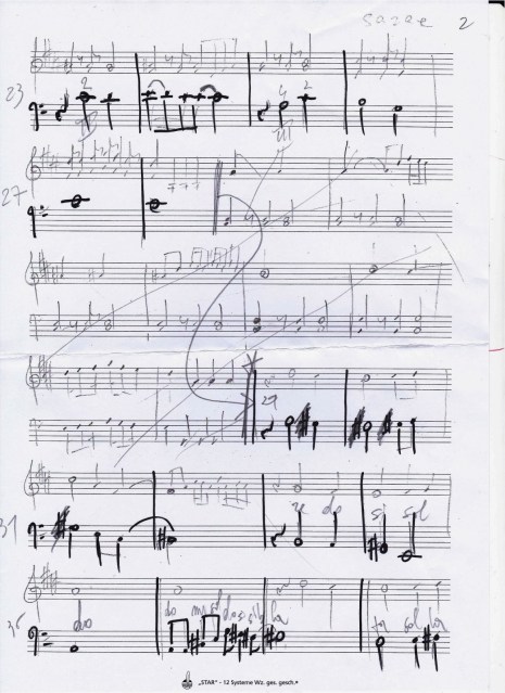 Anyway, we decided to give the piece a new twist. Many vehicles for virtuosic display are, how shall i put it, in rather poor taste (then again we all know that “de gustibus et coloribus non est disputandum”). Musically speaking i rarely find anything interesting about them, even when played on the original instruments they were composed for. So there is no need, in my opinion, to take this music all too seriously or to treat it with too much respect. On the contrary: let’s feel free to change it, to add to it. Let’s see if we can give a different meaning to this music.