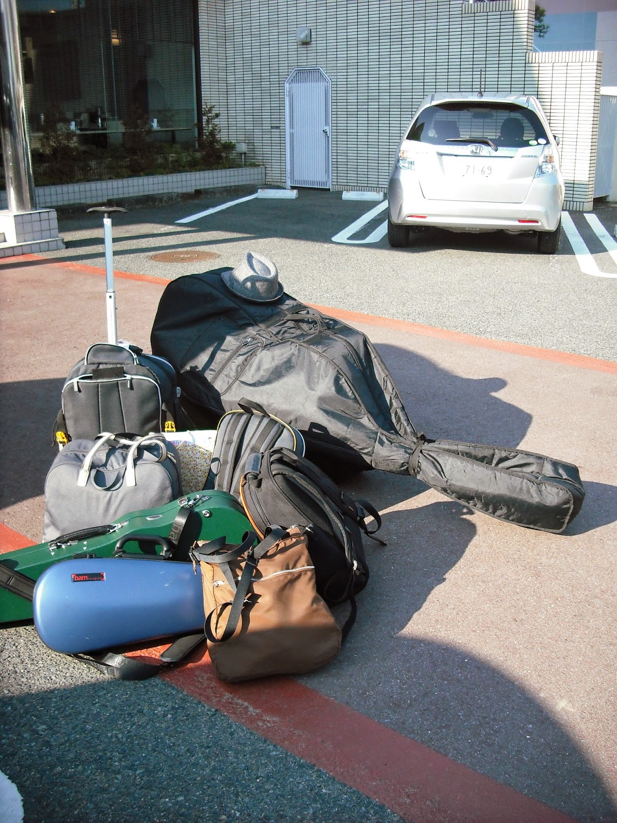 Kikuchi-san and Nakahira-san are sitting in front, talking, and i desparately try to catch a familiar word or phrase here and there. I really have to improve my Japanese beyond the level of “hello-pleased to meet you-thank you so much-see you again”. The morning cold has awakened the pain in my right shoulder that’s been for 30 years (that’s what playing opera will do to you… in addition to spoiling your eyesight and ruining your back). It comes and goes. Usually it’s bearable but sometimes when it’s cold or humid it manifests itself, and it worries me when i have to play with this frozen shoulder.