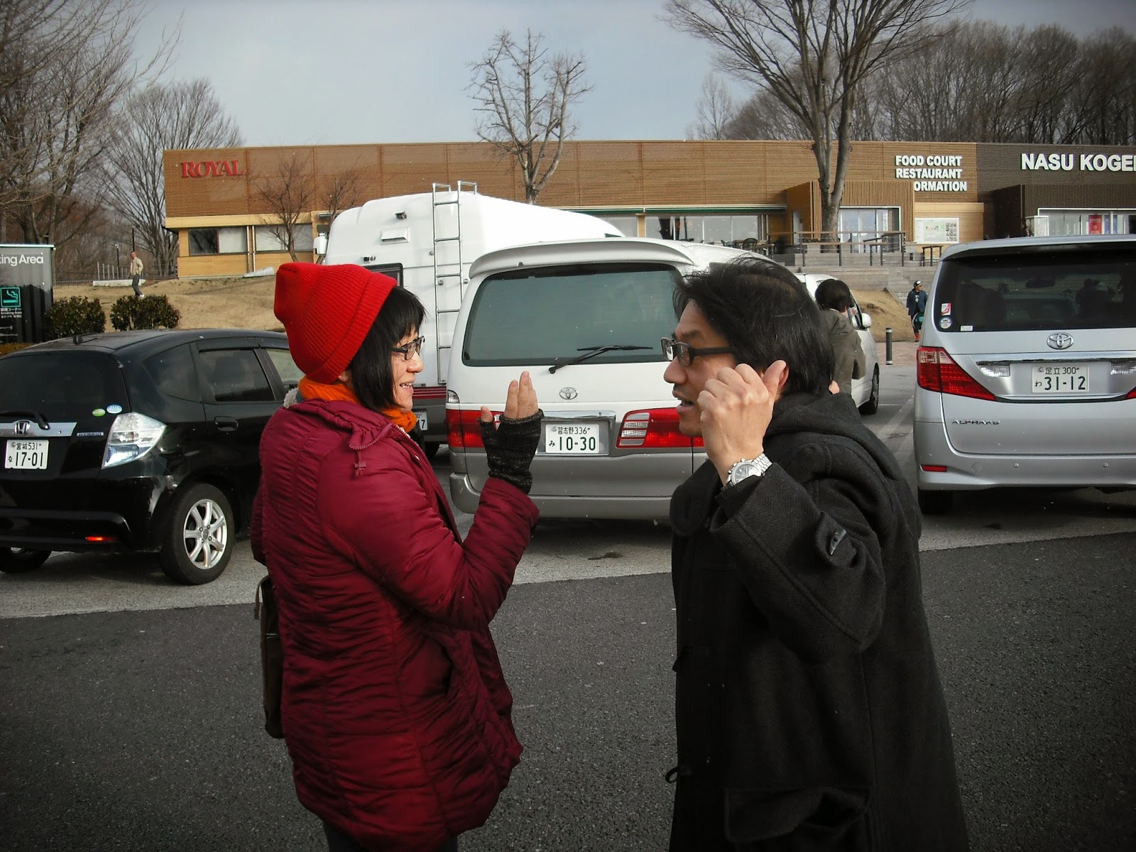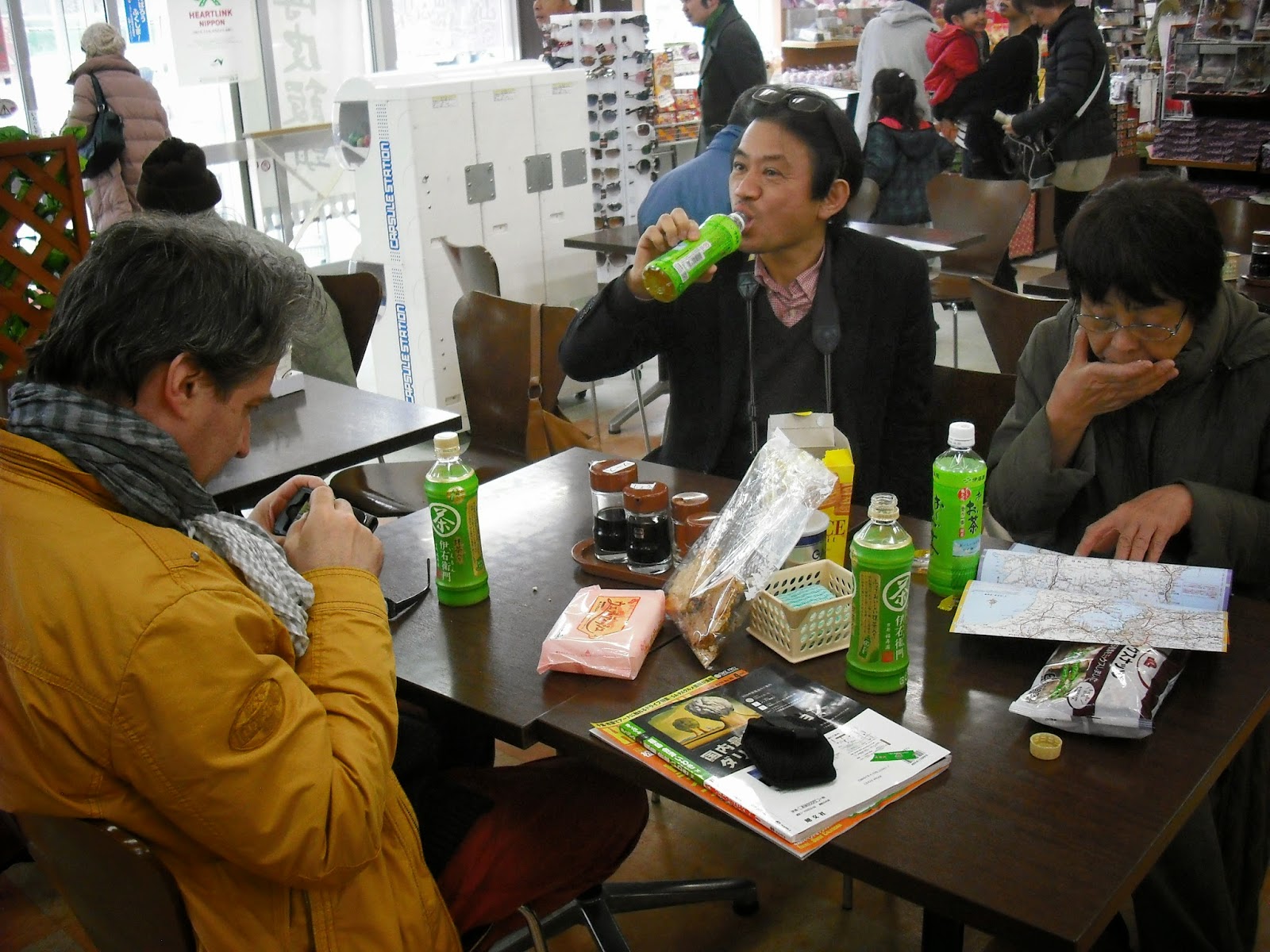 Almost 10 am, another 60 km to Iwaki. Radiation levels are lower here, so i take off my mask and breathe normally. We make a short stop at a resting place at Abukuma Kogen. It strangely reminds me of rural China. The people we see are mainly locals, peasants, simple folk with tanned, weathered faces. I can’t imagine these people relocating willingly to a safer place, leaving behind their land and livelihood.