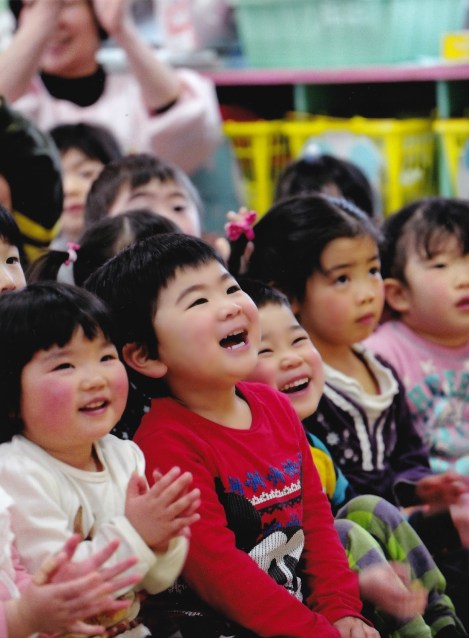 So after coffee, we go to our second school. This one is a bit smaller, and the children are generally a little younger. They have a lot of babies and 1 to 3-year olds. When we arrive, most are still sleeping. It’s wake up-time, but it will take a while to get them all ready for the show so we go upstairs to the office for tea. Here too there is the big Geiger counter in the playground at the back of the school, i can see it through the window. I decide to be rude and to take a photo or two without asking. Typical gaijin behaviour…