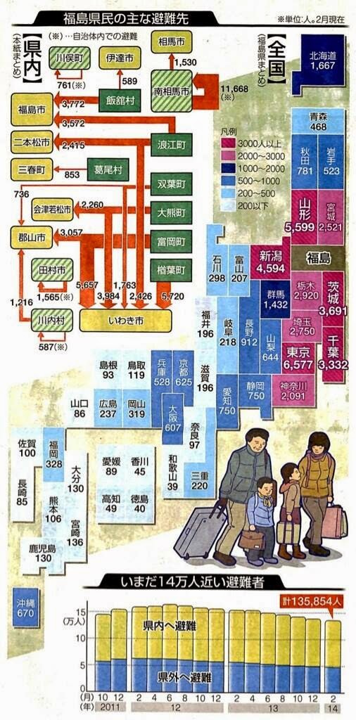 The numbers of evacuees, their origins and destinations. Iwaki has taken around 20.000 people.