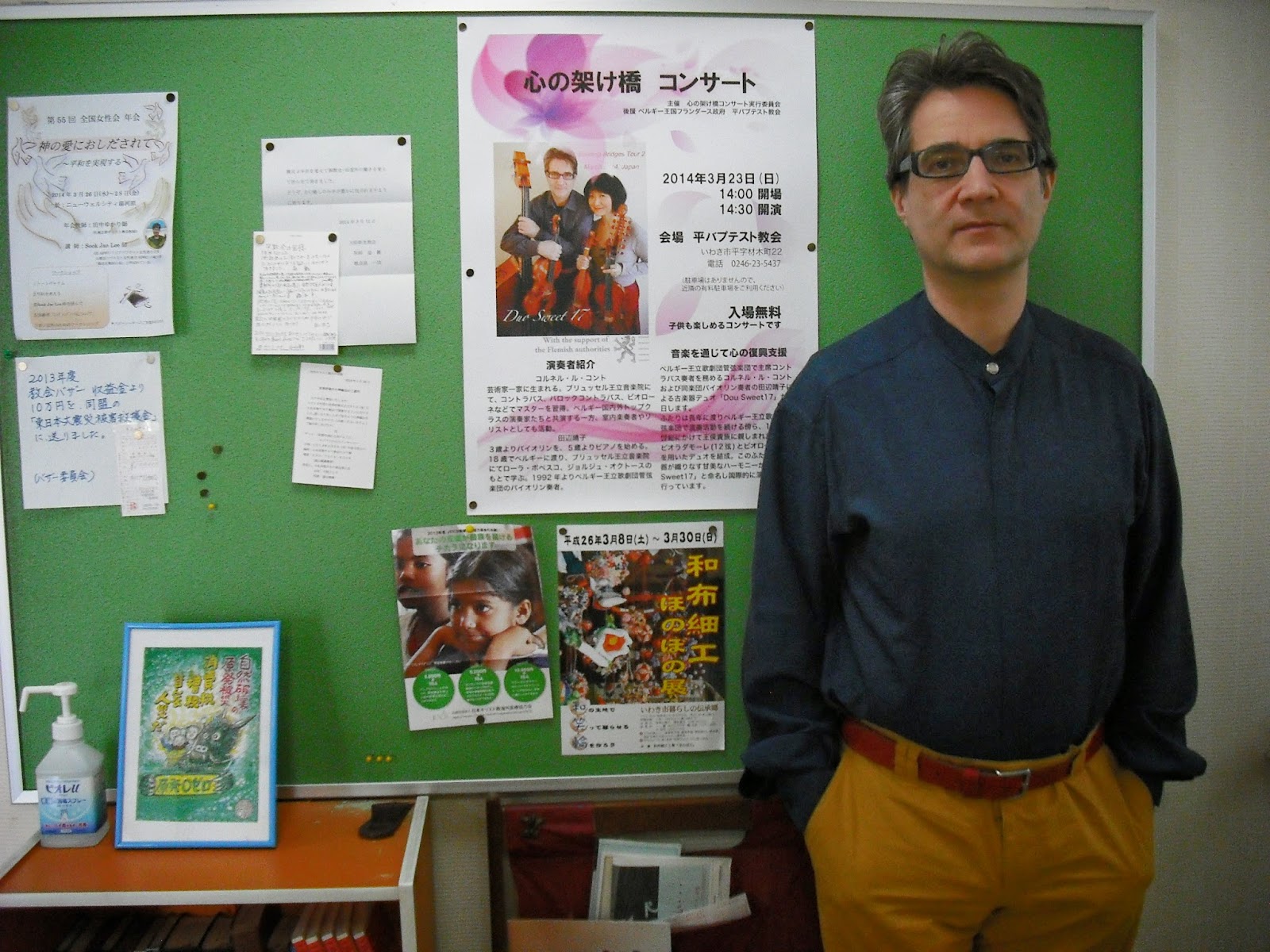 Before the concert, while we’re waiting for the audience to fill the little church, a tall, white-haired caucasian man comes up to us and adresseses in English. He’s an American artist and an author with several novels to his name. We have an interesting discussion about Japan, Europe, music.