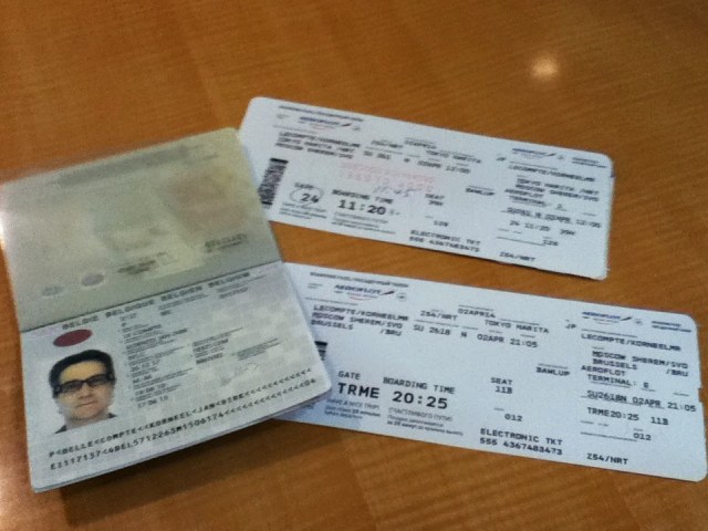 We plunge into the morning traffic. At this hour the highways are full already. We arrive at the airport at 9, pick up the bass (to my great relief it’s still there, safe and unharmed), and we proceed to the check-in at the airport’s North Wing. We’re lucky to be there so early. There’s practically nobody yet. We squeeze some more of our things into the big suitcase with the two violins, so our hand luggage is lighter and easier to handle, and then we go to the Aeroflot counter. As soon as we’re there, the queue behind us starts to grow exponentially. In no time there are hundreds of travelers waiting to check in. I feel sorry for them, because we know from experience that checking in the bass will take a lot of time. This is Narita, not Zaventem.