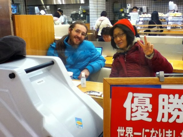 After the Security and Emigration checkpoints we have some time for Udon noodles. There’s free WiFi so we can check mails and slowly and reluctantly start reconnecting with the home-front reality.