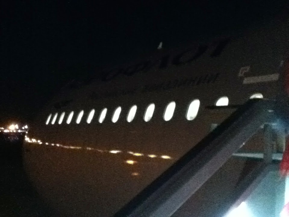 Through the plane’s porthole i can see heaps of dirty, shoveled snow by the side of the runway. Still winter here in Russia. It’s pitch dark now, the airco is blowing cold air from below the seats and freezing my feet and lower legs. I have that cold-sweat feeling i always get inside airplanes, feeling hot and cold at the same time.