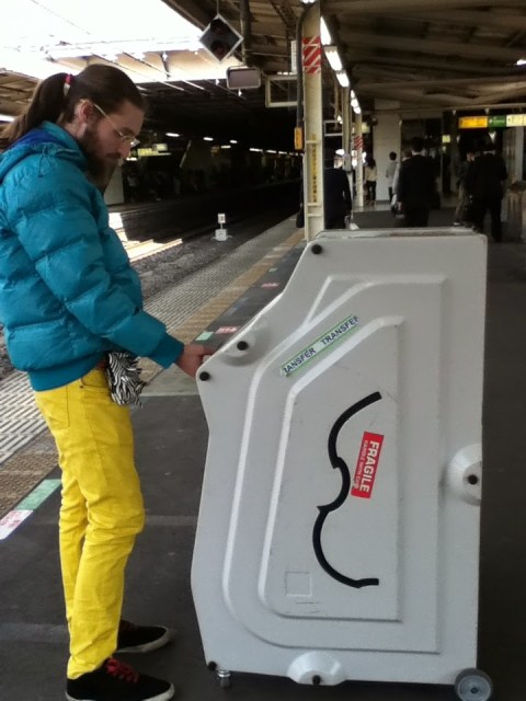 Last night i had terrible nightmares about having to take the early morning train with the bass. Our rush-hour experience yesterday had been special, to say the least. I have to drop off the bass at Narita Airport today, and there are only two Narita Express trains per day that make the trip from Omiya to the Airport: one in the morning around 9, and another one in the evening. Like last year i want to leave the bass at the airport one day early, so tomorrow we can travel light. Well, “light” still means all the rest of our luggage and the violins…